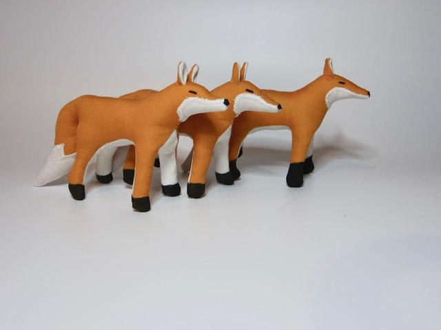 Renard en tissu, rembourré en laine de mouton (français). Les yeux sont brodés, le blanc du museau et de la queue est en appliqué. Hauteur : 8,5 cm. Cet article n'est pas un jouet, tenir hors de portée des enfants ! Prix pour un renard. Frais de port offerts.